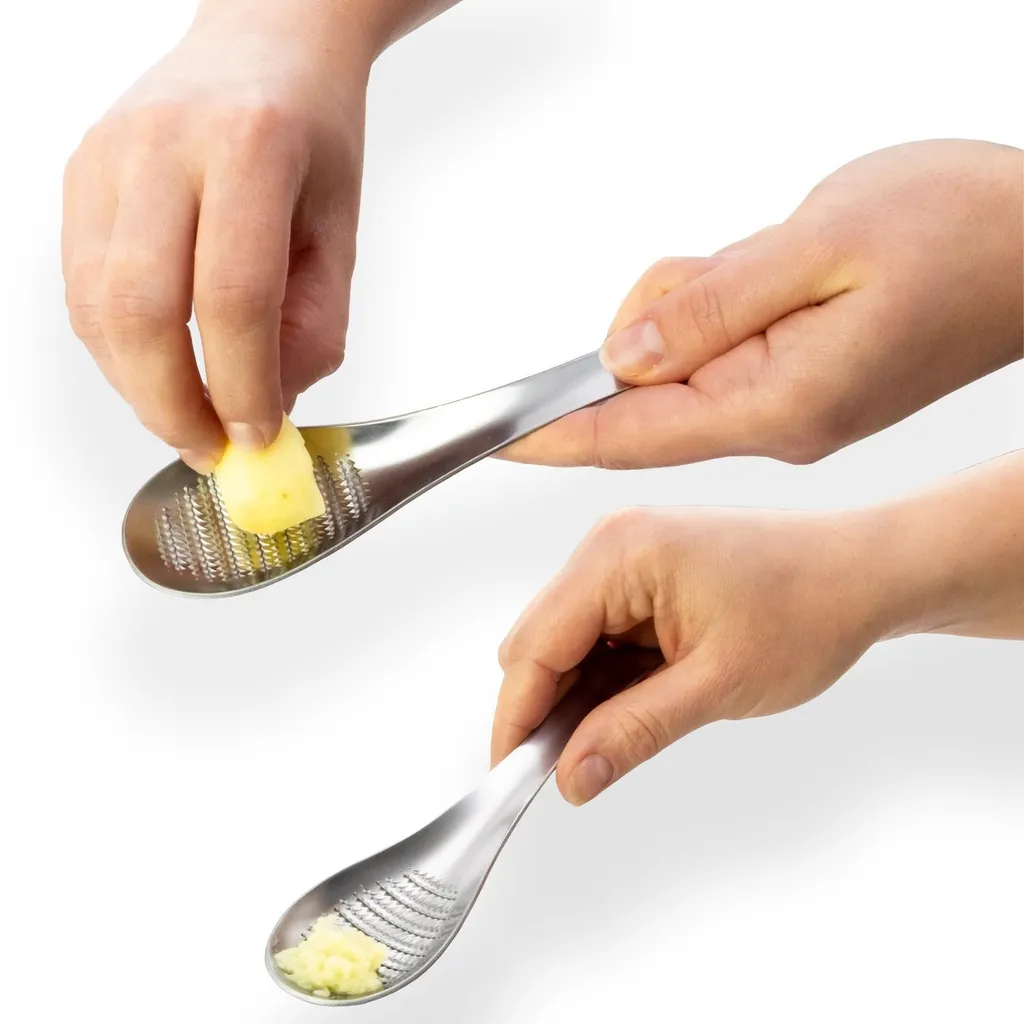 Ingwerreibe Knoblauch Ginger Löffelreibe Gewürzreibe Muskatreide Edelstahl Reibe