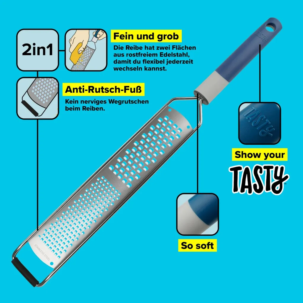 Tasty Handreibe Mit Grober Und Feiner Reibefläche Für Feines Und Grobes Reiben Von Muskatnuss, Zitronenschale Und Parmesan